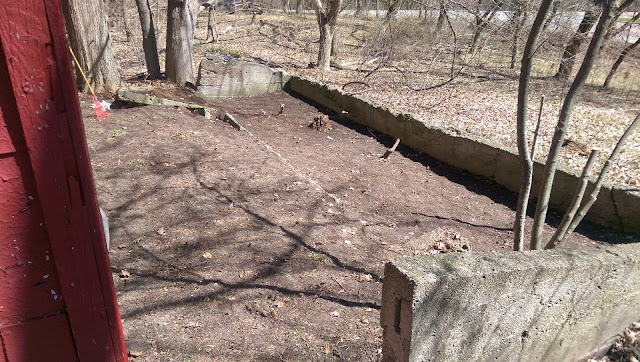 Once Winter was finally over (close enough) and none of the big trees had leaves, we went about to attempt to grow some grass. We started with a small area. Grass seed doesnt come cheap and we didnt want to dump it everywhere and have nothing happen i.e. throwing money away. So we set up the little area to the left of our porch.
